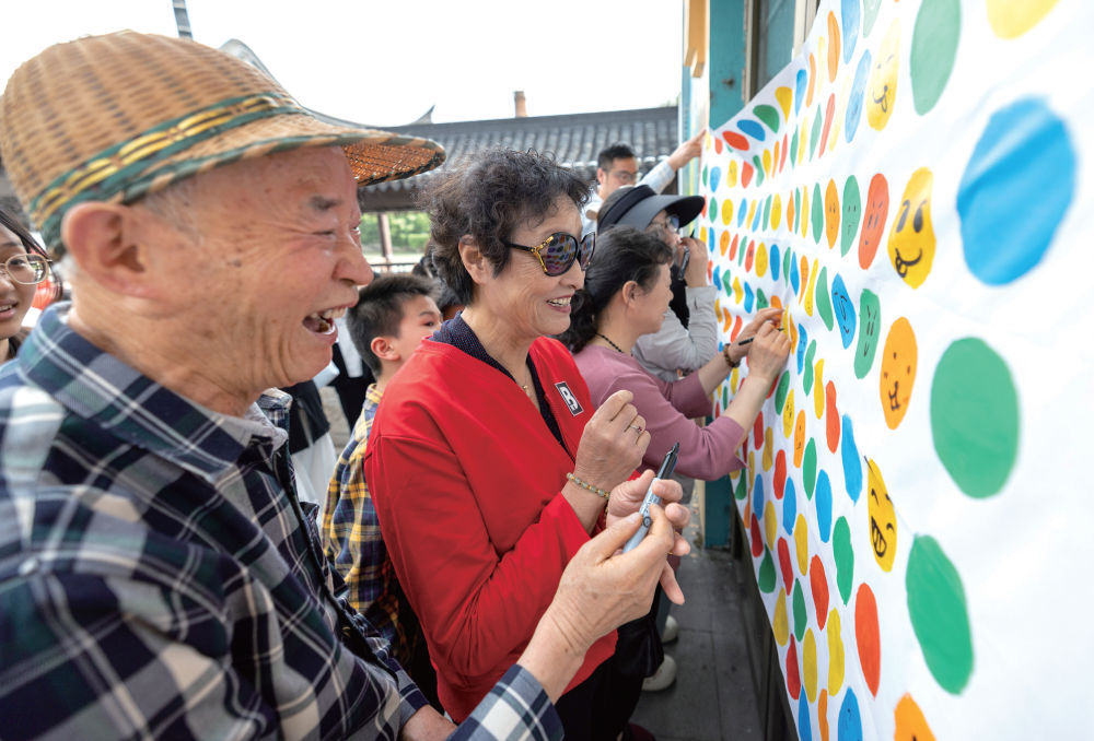 2025年5月6日,居民在浙江省湖州市吴兴区田盛街手绘笑脸
