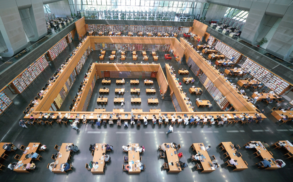 2025年4月22日,读者在北京国家图书馆内阅读、学习(殷刚/摄)